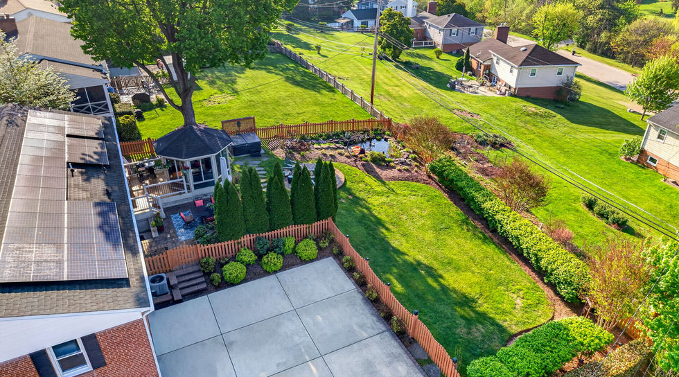 Outside, the grounds are nothing short of a private oasis. A spacious deck invites al fresco dining and relaxation beside the hot tub, while a charming gazebo provides shaded gathering space. A serene pond, lush gardens, and a fire pit area create enchanting focal points amid the manicured, fully fenced lawn. Solar panels and a whole-house generator ensure energy efficiency and peace of mind. Additional highlights include a two-car rear-entry garage with EV charger, updated major systems such as the HVAC, hot water heater, and gutters with leaf guards, and abundant outdoor living structures that make this property a true entertainer’s dream.