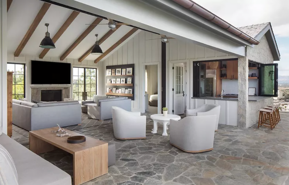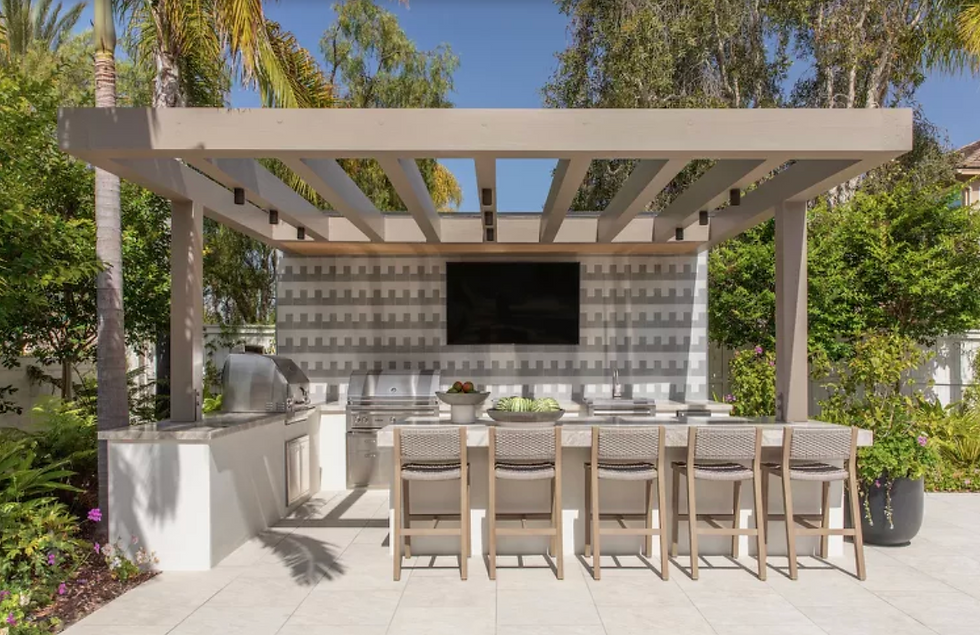 Want to take it up a notch? An outdoor TV mounted under a covered area turns your sanctuary into the ultimate entertainment hub. Pair it with weatherproof speakers, a comfortable sectional, and maybe a bar cart or built-in grill station. Suddenly movie nights, game days, and Sunday morning coffee with the news all happen outside.
