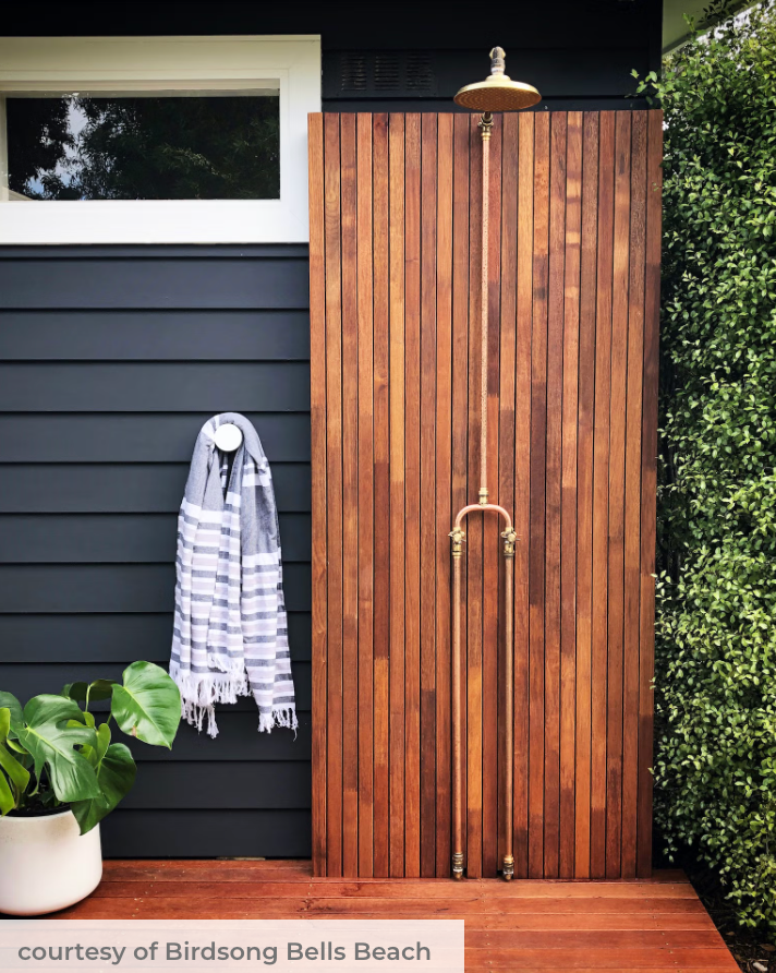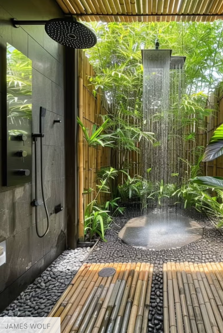 Install one near a pool, deck, or garden path with beautiful tile, rainfall showerheads, and privacy walls covered in climbing vines. It’s practical, spa-like, and incredibly appealing to buyers who want that resort-at-home feeling.